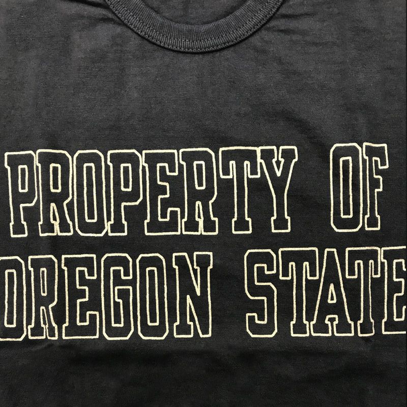 旧式吊編機による柔軟性と伸縮性に富んだオリジナル素材Tシャツのプリントモデル。