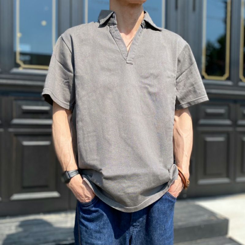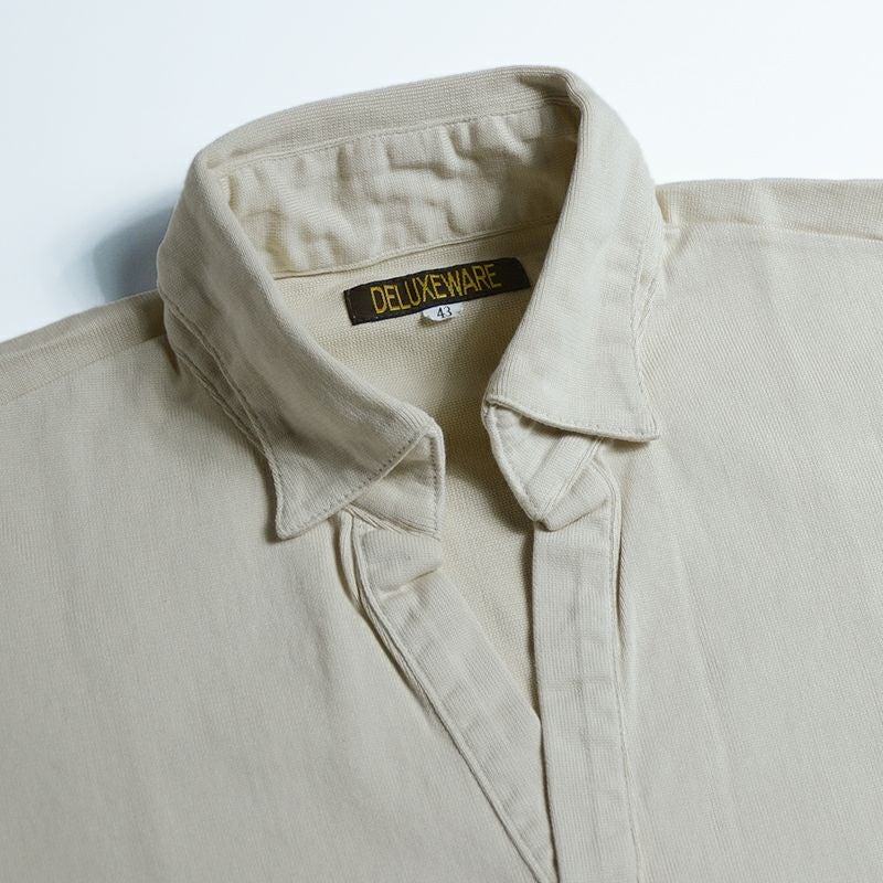ラッセル編みオールコットン素材。独自のオープンカラースタイル。