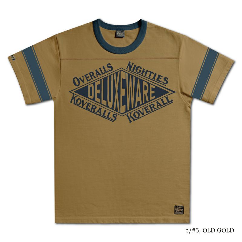 配色で楽しむデラックスウエアロゴプリントのフットボールスタイルTシャツ