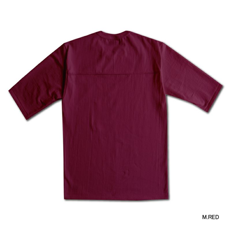 唯一和歌山に存在する旧式吊編機を使用した乾いた質感を特徴とする天竺生地素材を使用。1960年代に存在したフットボールTシャツをリプロダクトしたバランスの取れたカタチが魅力です。2020年春夏新色はジーンズとの相性◎。