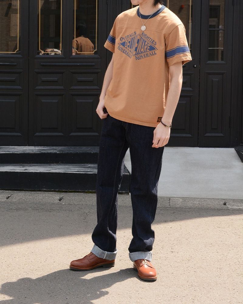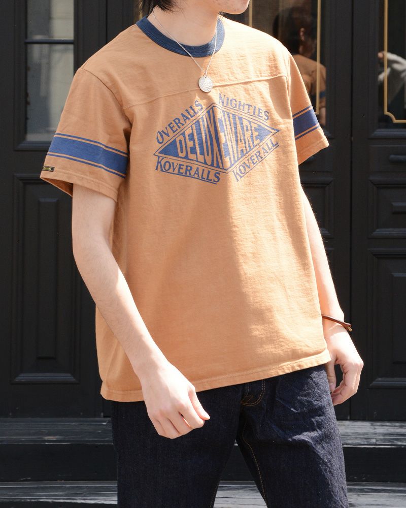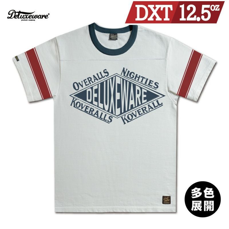 デラックスウエアTシャツの顔となる最高強度Tシャツ「DXTシリーズ」。厚くガッシリ編み上げた素材は正しく最高強度に相応しい風格を放っています。タフな素材としっかりした創り込みでTシャツの最高品質を体感出来る唯一無二の新Tシャツシリーズを是非体感下さい。このモデルは切替と配色で楽しむフットボールスタイルです。