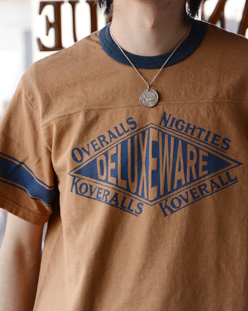 配色で楽しむデラックスウエアロゴプリントのフットボールスタイルTシャツ
