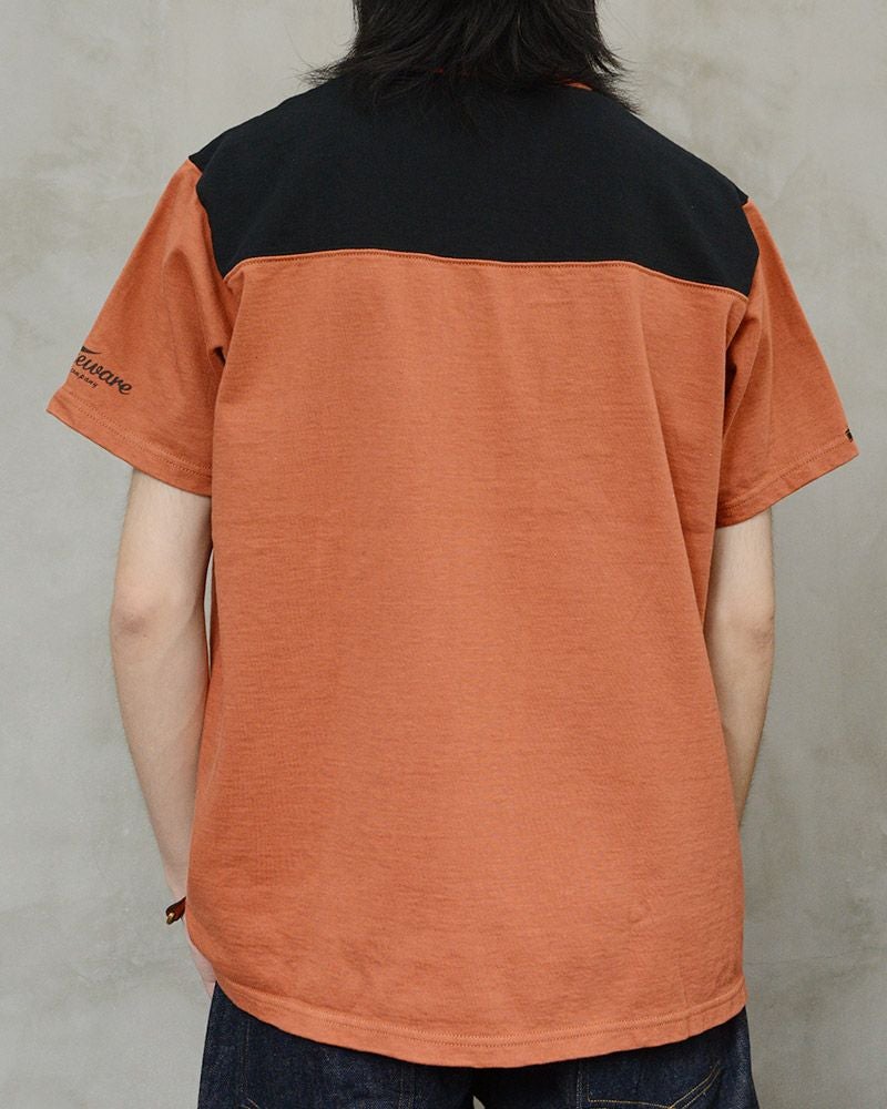 デラックスウエアTシャツの顔となる最高強度Tシャツ「DXTSシリーズ」。厚くガッシリ編み上げた素材は正しく最高強度に相応しい風格を放っています。タフな素材としっかりした創り込みでTシャツの最高品質を体感出来る唯一無二の新Tシャツシリーズを是非体感下さい。このモデルは切替と配色で楽しむフットボールスタイルです。