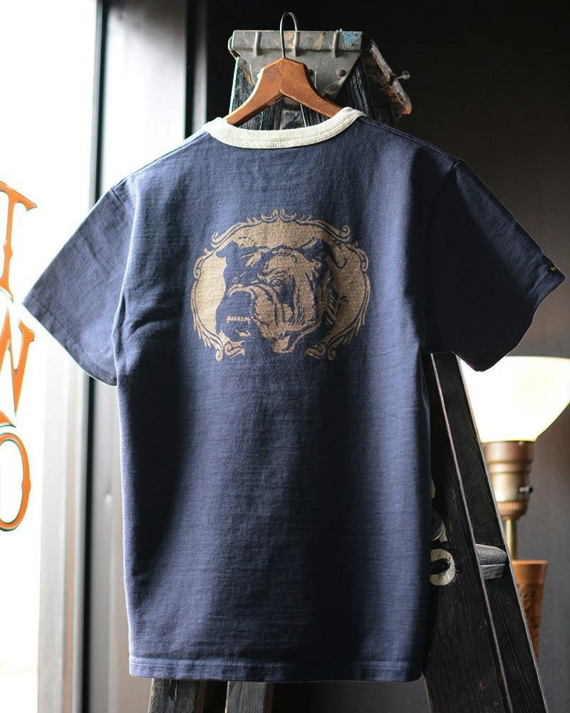 デラックスウエアTシャツの次の顔ともいえる吊天竺。元々はフワフワに編立てる和歌山の旧式吊編機を使用し、限界まで密度を詰めたこれ以上無い特殊素材です。編糸にアメリカコットン20番を2本撚り合わせ、更にその撚り合わせた編み糸を2本引き揃え高密度に編み立てることで得られた品質です。1日におよそ10m程の生産量(Tシャツにして9着分)の大変非効率な希少素材でもあります。