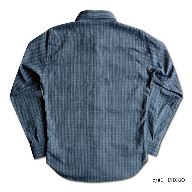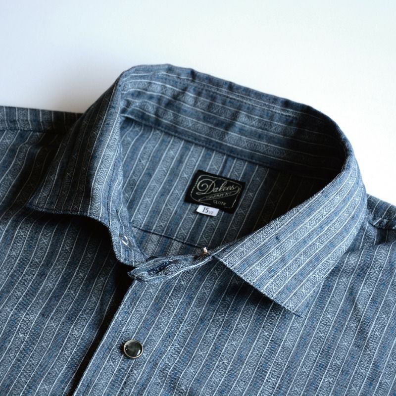 ダリーズ&コーの顔とも言える商品「キャラコ」シャツ。シルエットをマイナーチェンジし全体のシルエットバランスを再考したほか、スナップボタン開閉の派生新型として登場!インディゴドビー織りと言う柄織素材も見所の一つ。