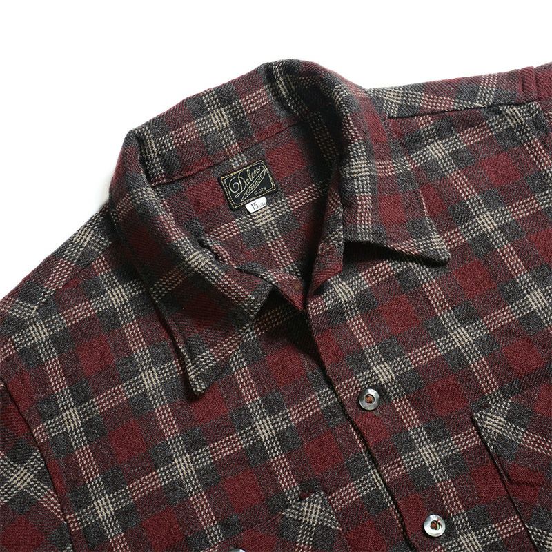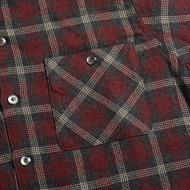 グレンチェック生地の開襟カラーウールシャツ。