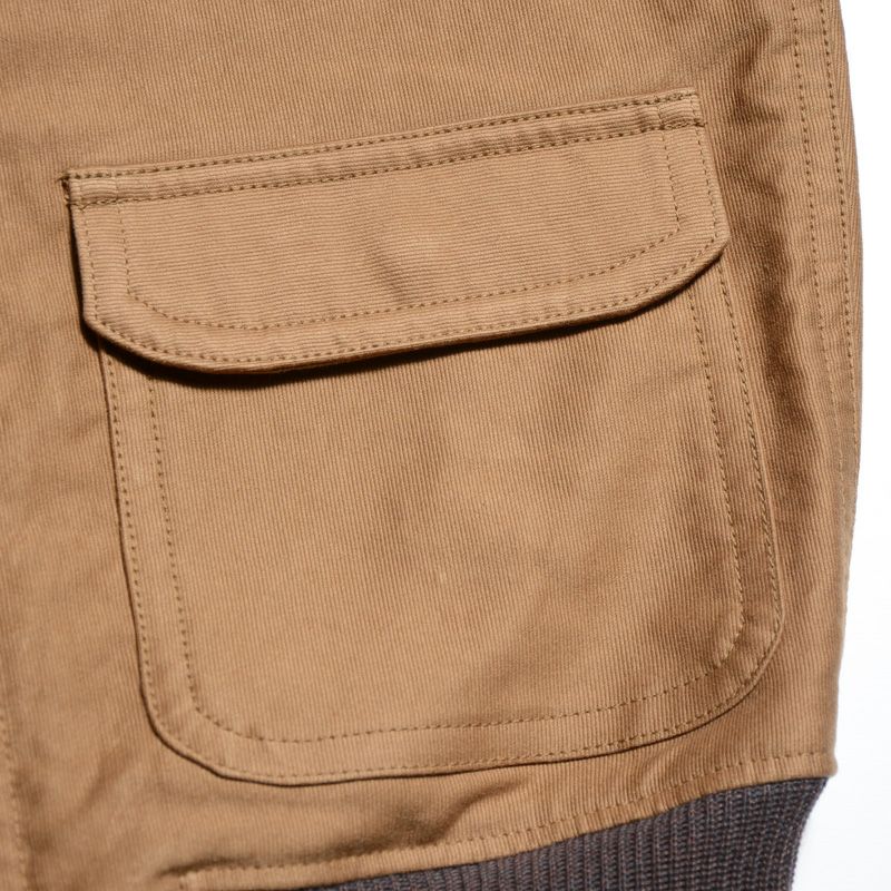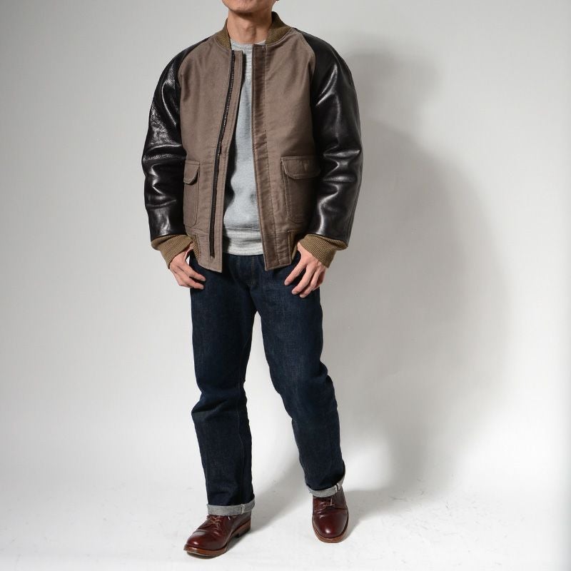 1940年の時代背景から「もし」と言う仮説で創り上げたベースジャケット。これはベースボールの「Base」と軍基地の「Base」両方の意味を内包しています。スタジャン×ミリタリーのありそうで無かった組み合わせは、どこか新鮮でどこか雰囲気が感じられます。過去のヴィンテージにも現代のファッションにも存在していない商品種があるとしたなら、このような「融合」から生まれたモノでしょう。