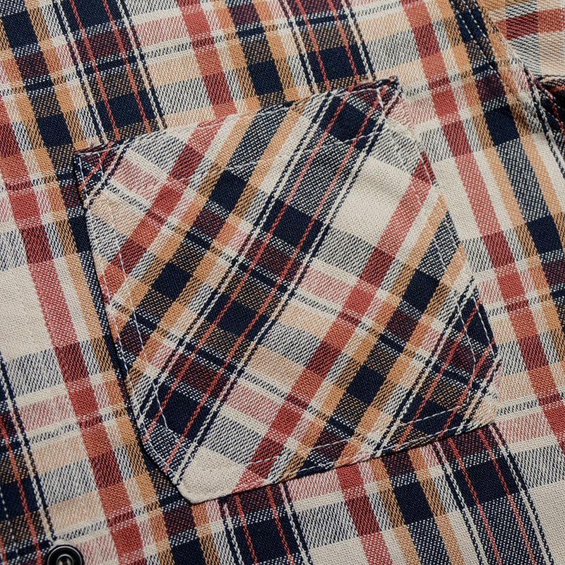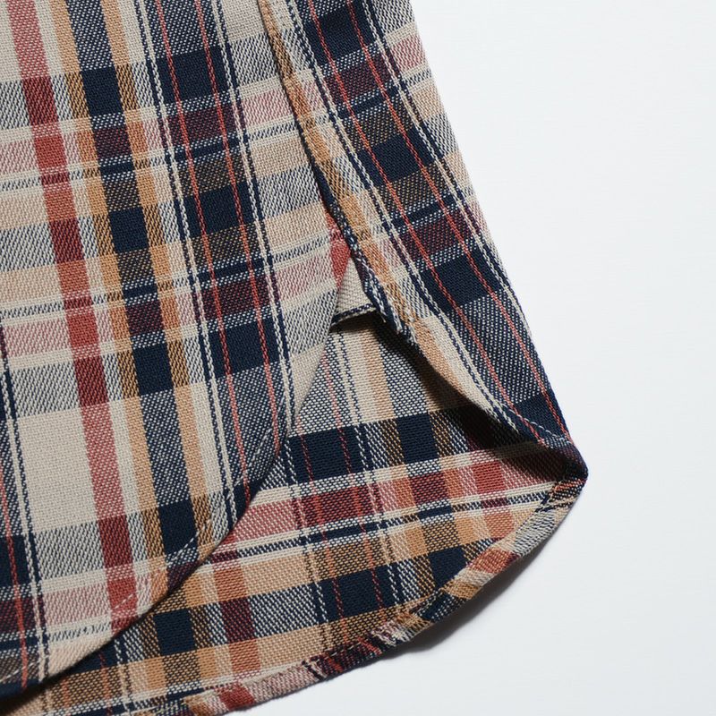 兵庫県西脇で製造したミディアムネル素材。厚すぎず薄すぎずの素材感は3シーズン対応の幅広い使いやすさが魅力です。トリコロール色をチェック柄に仕上げ、無起毛の素材感により長いシーズン楽しめるシャツです。