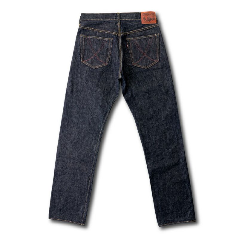 この型紙赤鬼モデルは、腰回り・渡りにかけ若干の余裕があり、裾にかけては若干のテーパードにより直線で落ちる最も馴染み深いレギュラーストレートが特徴です。