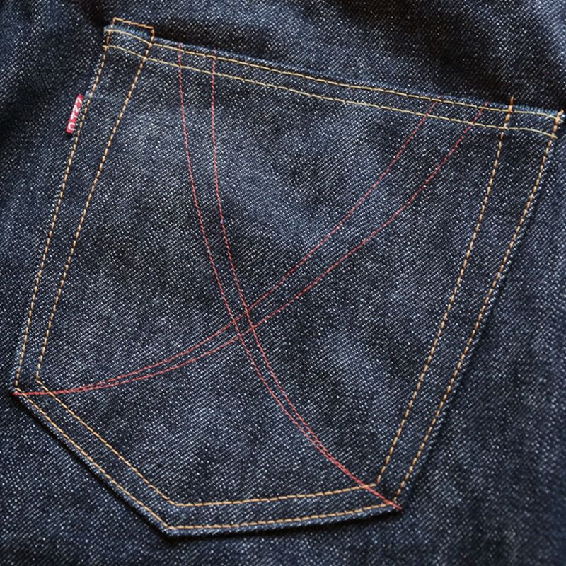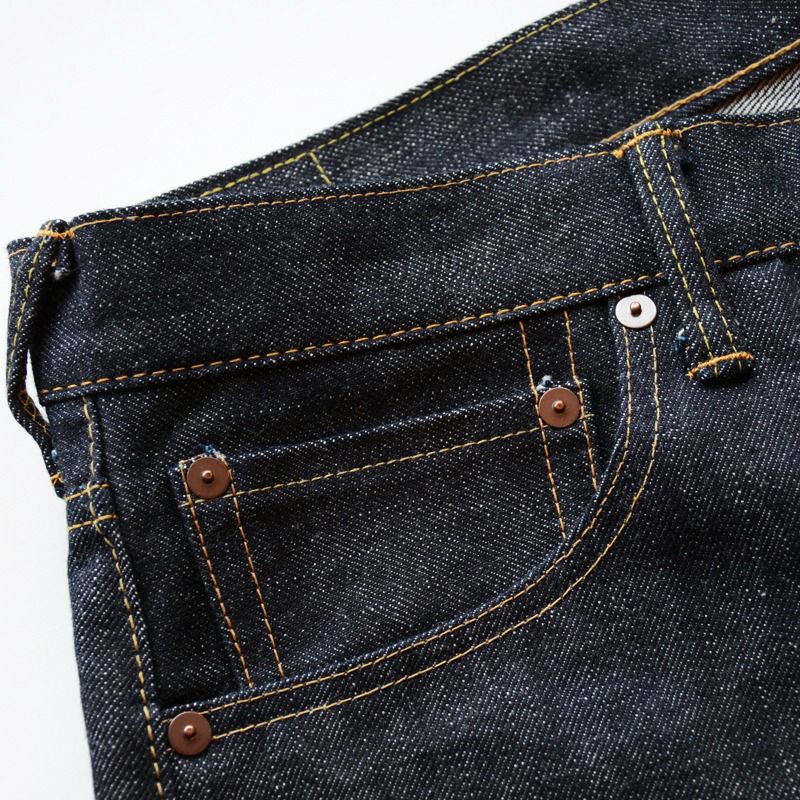 また、ムラ糸(ムラが強い織糸) を用いた点の色落ちとインディゴを濃色で染めたことで濃淡がハッキリと現れる経年変化が特徴です。