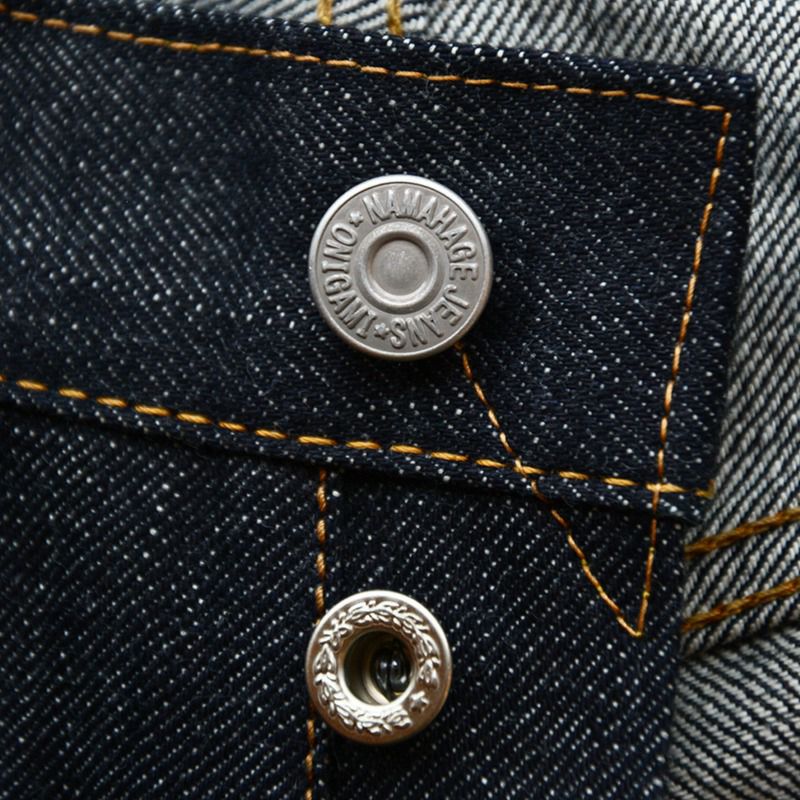 秋田なまはげをイメージした革パッチ、リベット刻印、バックポケットのステッチなど遊び心を持ちながらも高品質なジーンズに仕上げています。