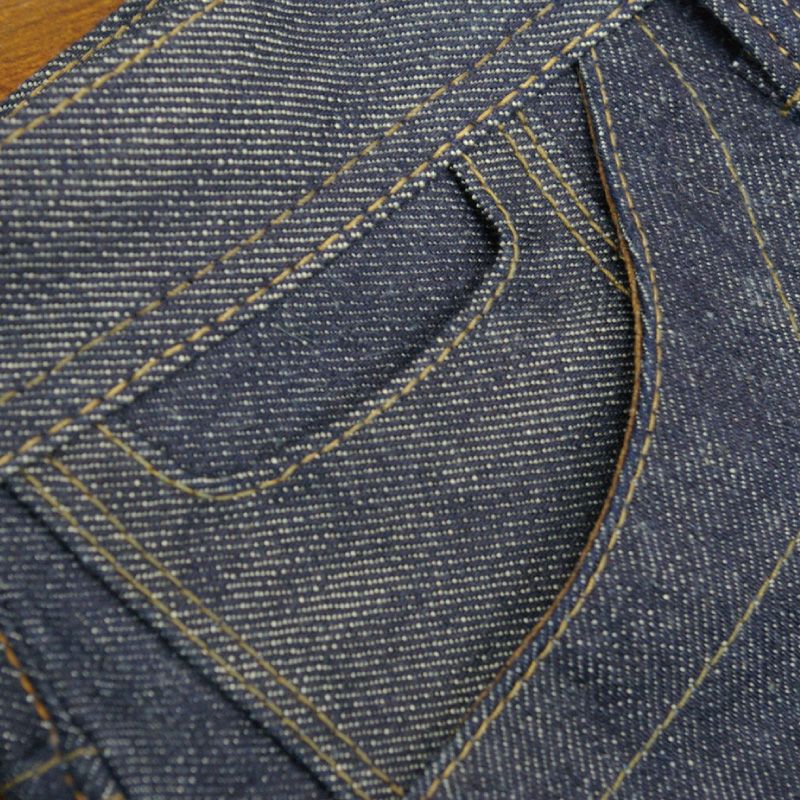 旧式織機で織り上げた32インチ=80cm幅デニム。一台から、二種類の生地を織り上げ使用するため、同時に二つの味わいが楽しめる。