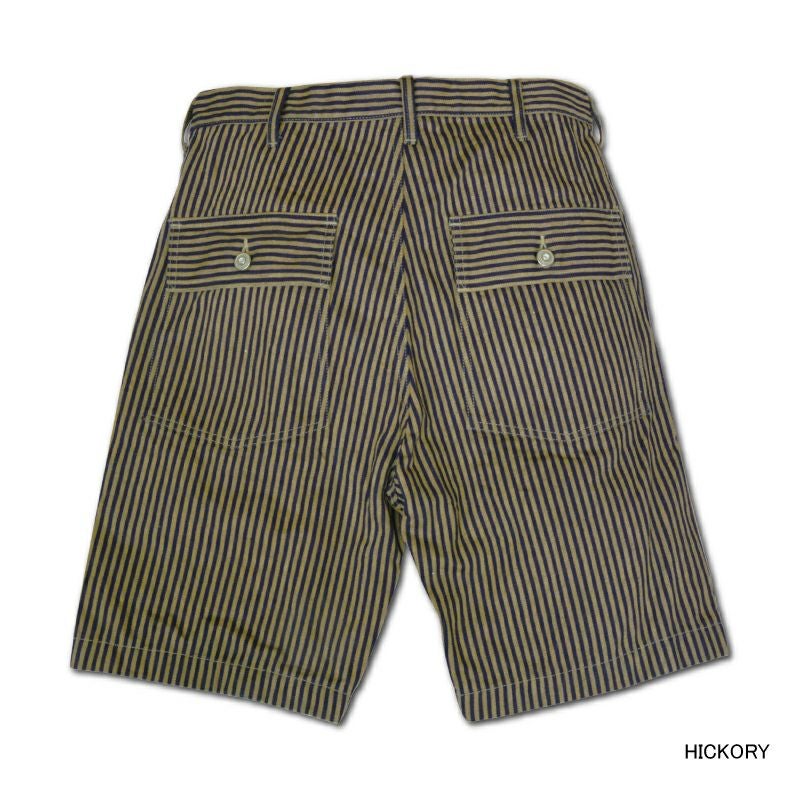 着込む事で経変変化を楽しめるオリジナルデニム生地やヒッコリー生地を使用したサマーショートパンツ。 ワークスタイルでの合わせ易さも魅力。