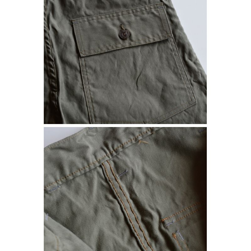 岡山の旧式力織機で独自開発したデニム、経糸に対し緯糸を7倍打ち込む岡山産のオリジナルコード織り、兵庫県西脇で挑戦したヒッコリーデニムなど、何れにしても着込む事で経年変化を楽しめるようオリジナル素材を使用しています。