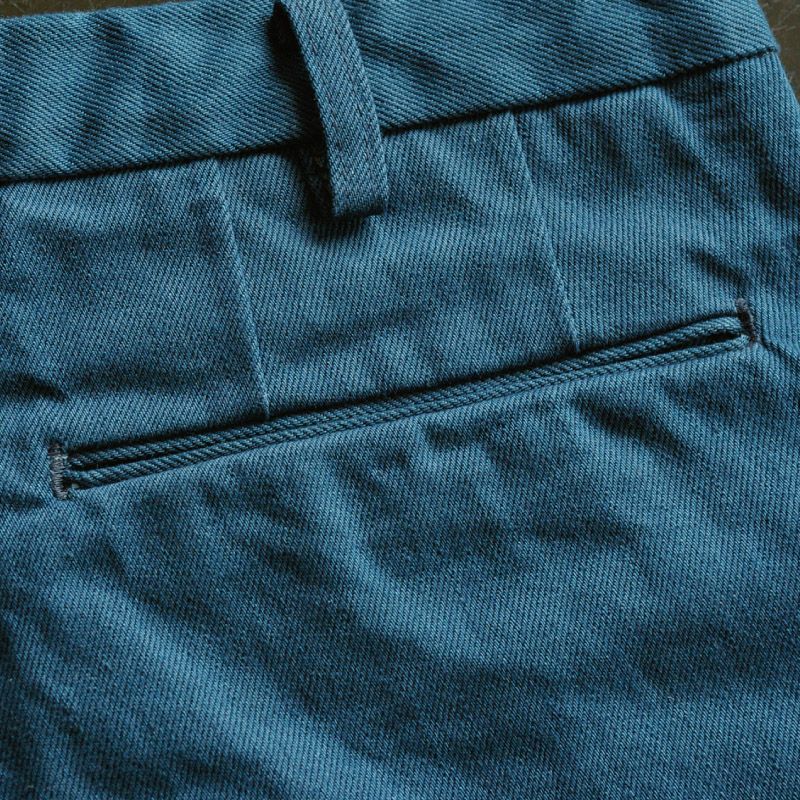 ポケット、ベルトループ、シルエットなどクラシックスラックスの要素を盛り込んだ穿きやすいテーパードストレート。ワークの創り込み、そしてクラシックトラウザーの綺麗なシルエットが魅力。