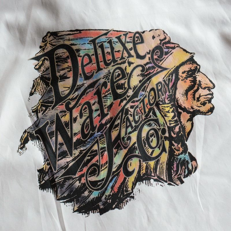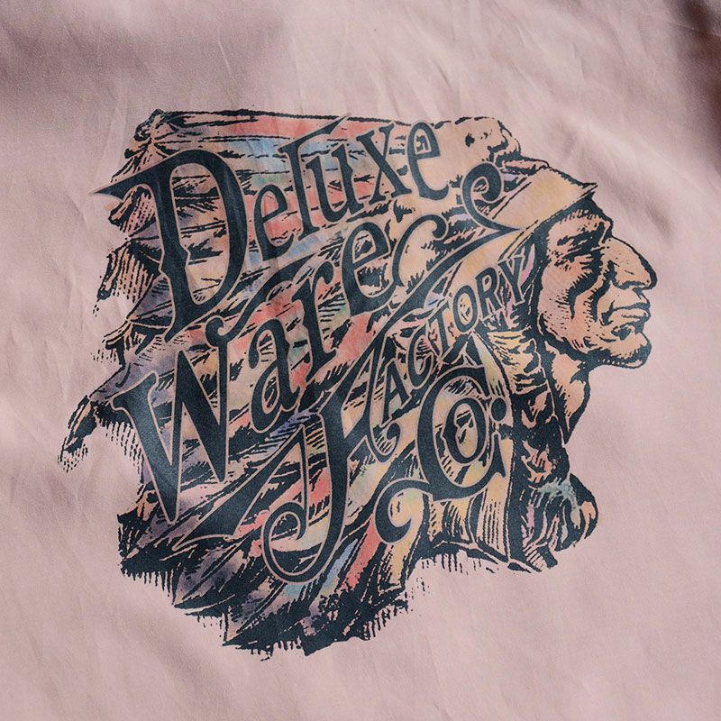 この4色分解とは、デザインを赤・青・黄・黒の4色に分け、4色全て重ねてプリントし発色させるシルクスクリーンの手法の一つですが、ベッタリと厚くなりステッカーを貼り付けたような風合いに仕上がるデメリットもあるため、染料を変更し職人の手による1回擦りで作業を行うことでデメリットを解消しました。「なんか良い風合い」と感じるモノには人の手や技術が盛り込まれています。このレーヨンシャツAL-04もその一つではないでしょうか。