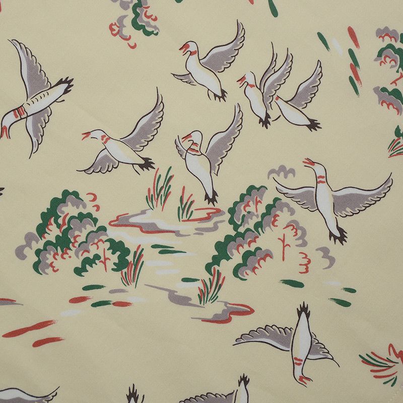 感覚とは不思議なものです。時代が進めば進むほどに「綺麗で扱い易い素材」が生まれますが、何処か不均一でデザイン的で表情のあるモノに惹かれます。実はそれが難しい。意図せずに生み出された不均一なムラ感や素材感またはデザインとも取れる表情を再現しようとすると何か人工的な「違和感」が生まれてきます。自然から発生した表情を得るためには、探し当ててでも古い設備や素材を使用するほか方法は無いのです。「表情を楽しんでほしい!」これが私企画者がこの商品に込めた想いです。ヴィンテージの柄が!旧式ファブリックが!という内容ももちろんありますが、生地表面に触れ、プリント染料を覗き込み、使用したファブリックの機能性に言葉にならない「何かいいね!」が生まれたら私の勝ちです。