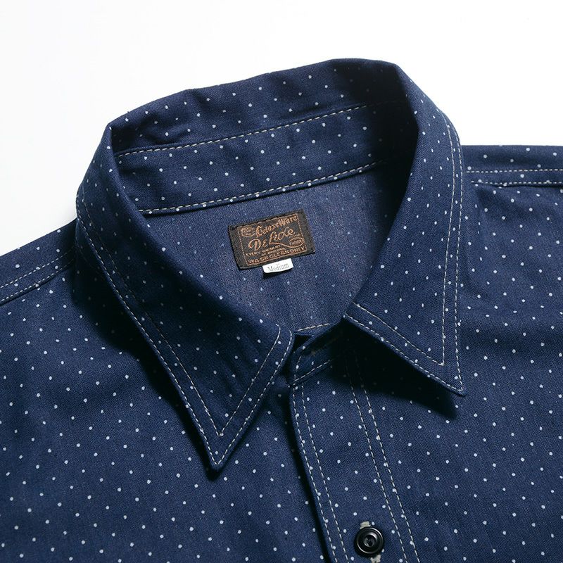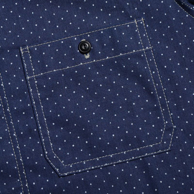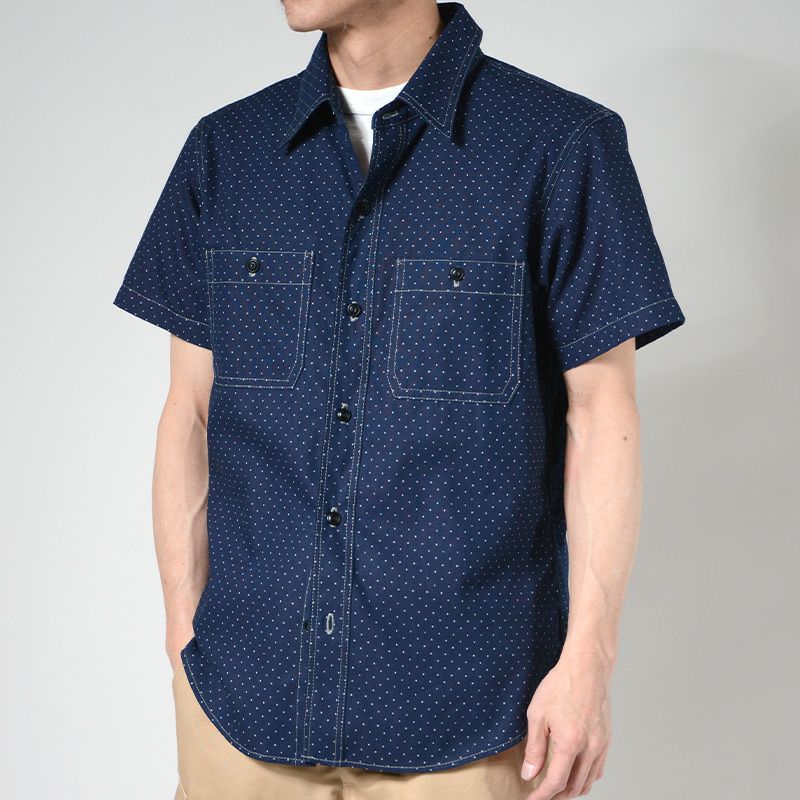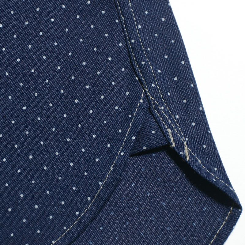 岡山県井原で製造した10ozインディゴポルカドットと兵庫西脇で製造したピンドットインディゴを使用したワークスタイルシャツ。シルエットや形状を自分に馴染ませて創り上げるヴィンテージ形状が面白いシリーズです。