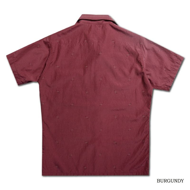 2018年から手掛けるハワイアンシャツの「ALシリーズ」。福井県福井市の旧式シャトル織機を使用し製造したフィラメントレーヨン+コットンの唯一無二の素材と、日本に数件にまで減少した生地手捺染プリントによるプロダクツです。このAL-02は着物を手でプリントを行っている京都の職人による手捺染プリントを駆使しカタチにしました。日本古来の設備や技術を駆使し、アメリカンヴィンテージデザインと融合する当時または本来の「ハワイアンシャツ」の製造背景を再現した企画と言えるでしょう。
