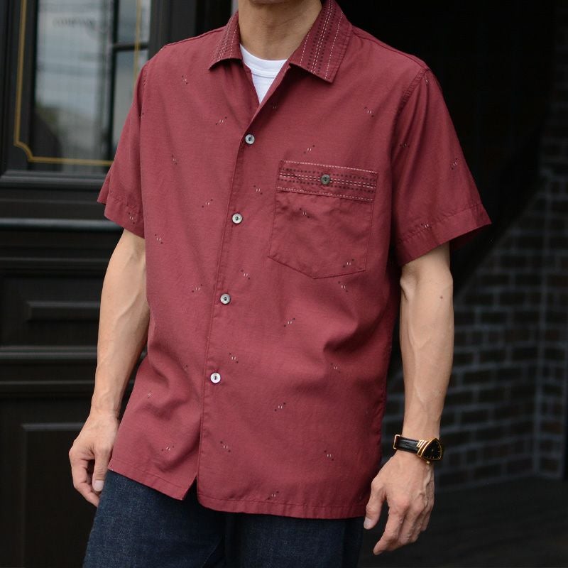1950年を彷彿する渋いレイルドットのレーヨンシャツ