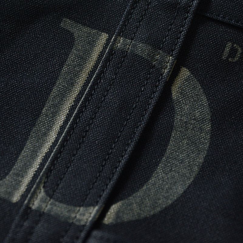 - 岡山県児島で製造した高密度ダックキャンバス素材。旧式力織機を使用し経緯糸共に10番単糸で織り上げた11号帆布の厚さとガッシリと硬い質感が特徴。