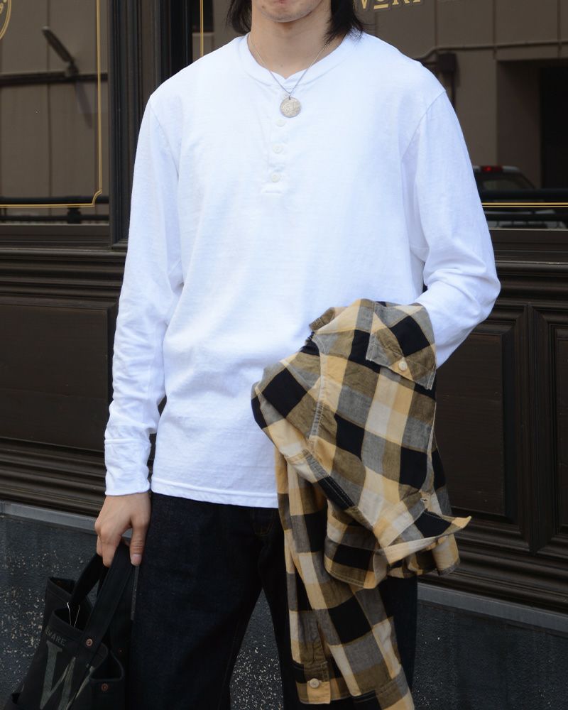 他の画像を見る Spinner.L[WORKER HENLEY NECK] 凸凹のムラ糸表面を焼却したシェイプコットンによる7oz吊天竺。 1920sワークヘンリー長袖ニット ¥ 12,100 税込 カートに入れる