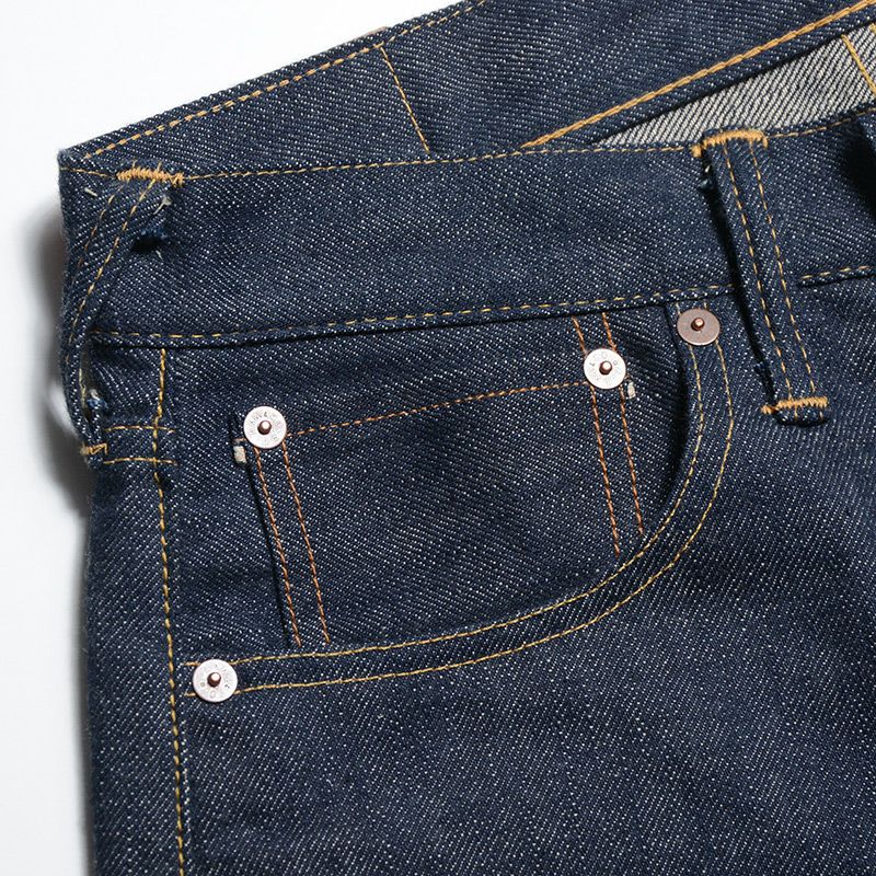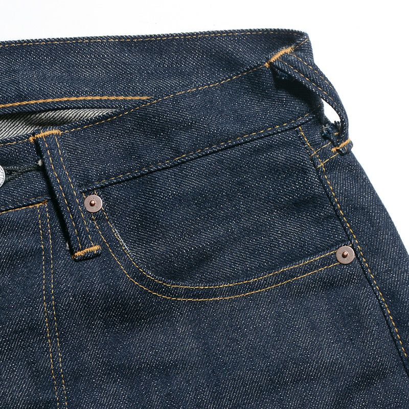 - 素材表示:オリジナルドライデニム13.6オンス、インディゴロープ染色&でんぷん糊、アメリカメンフィス産コットン