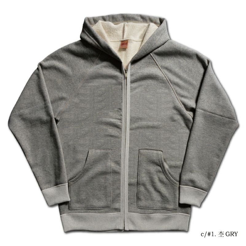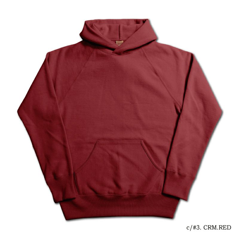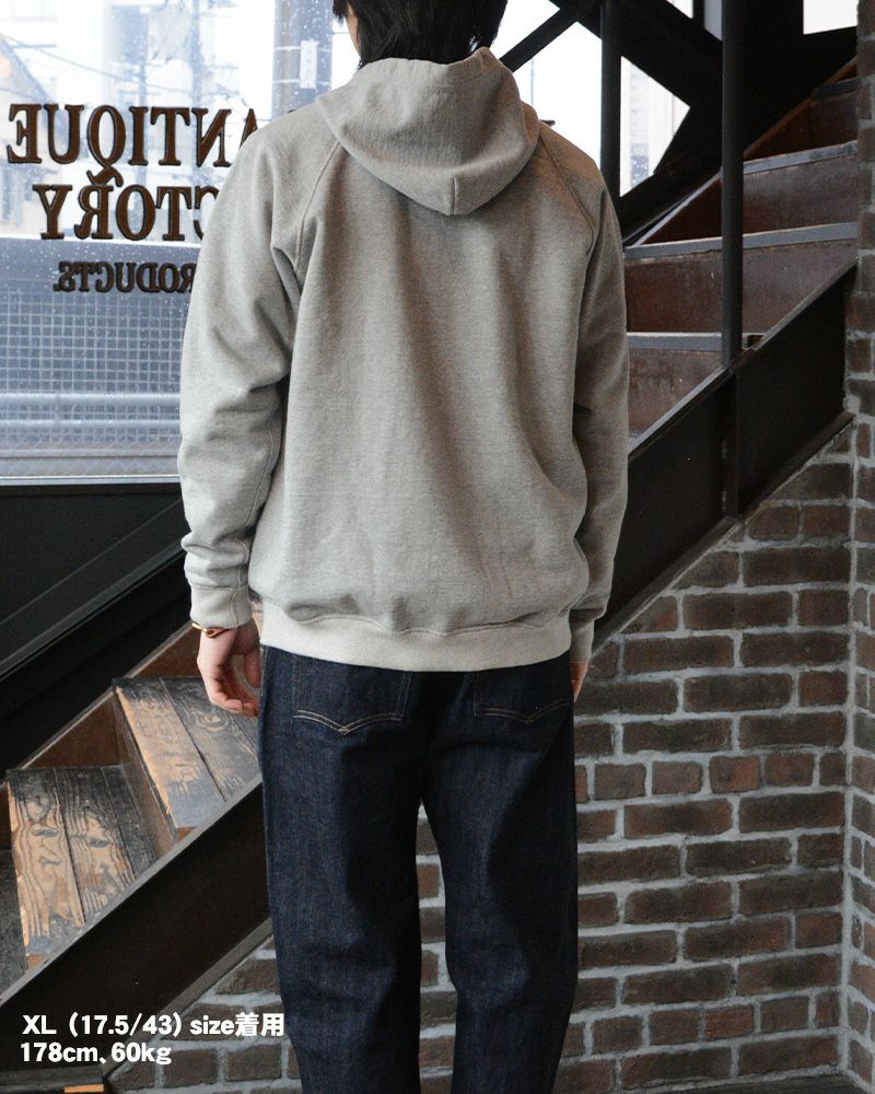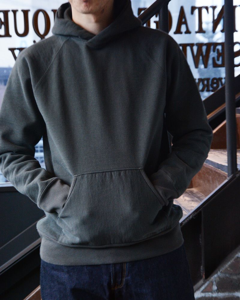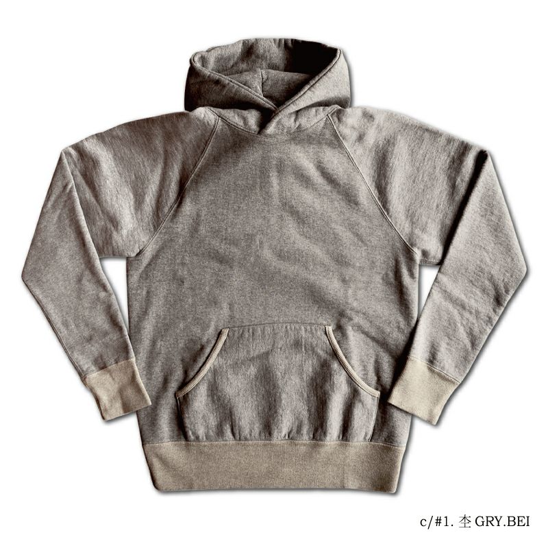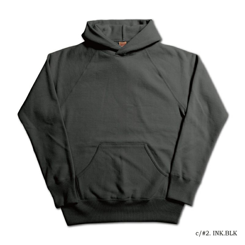 旧式吊編機の風合いを生かした14ozミディアムラグランパーカー