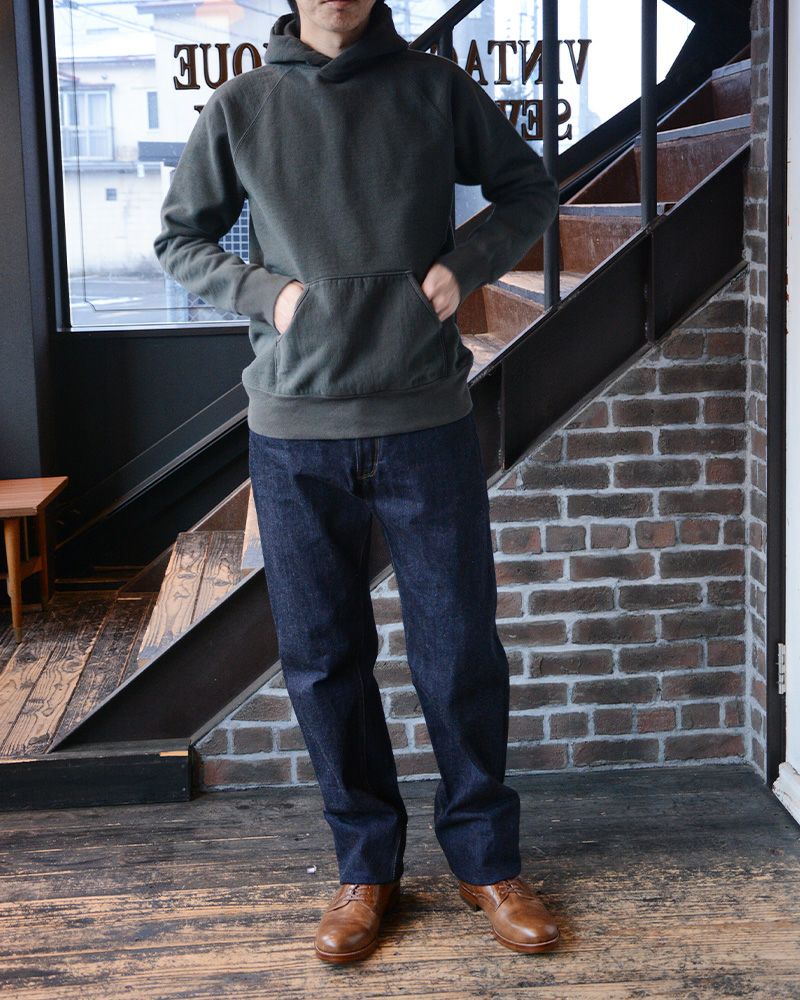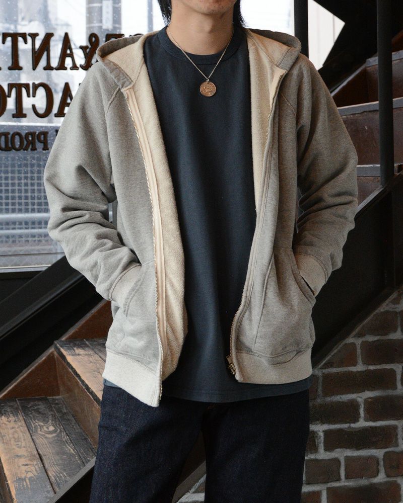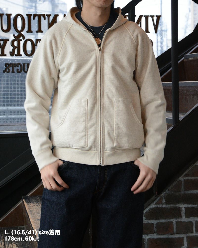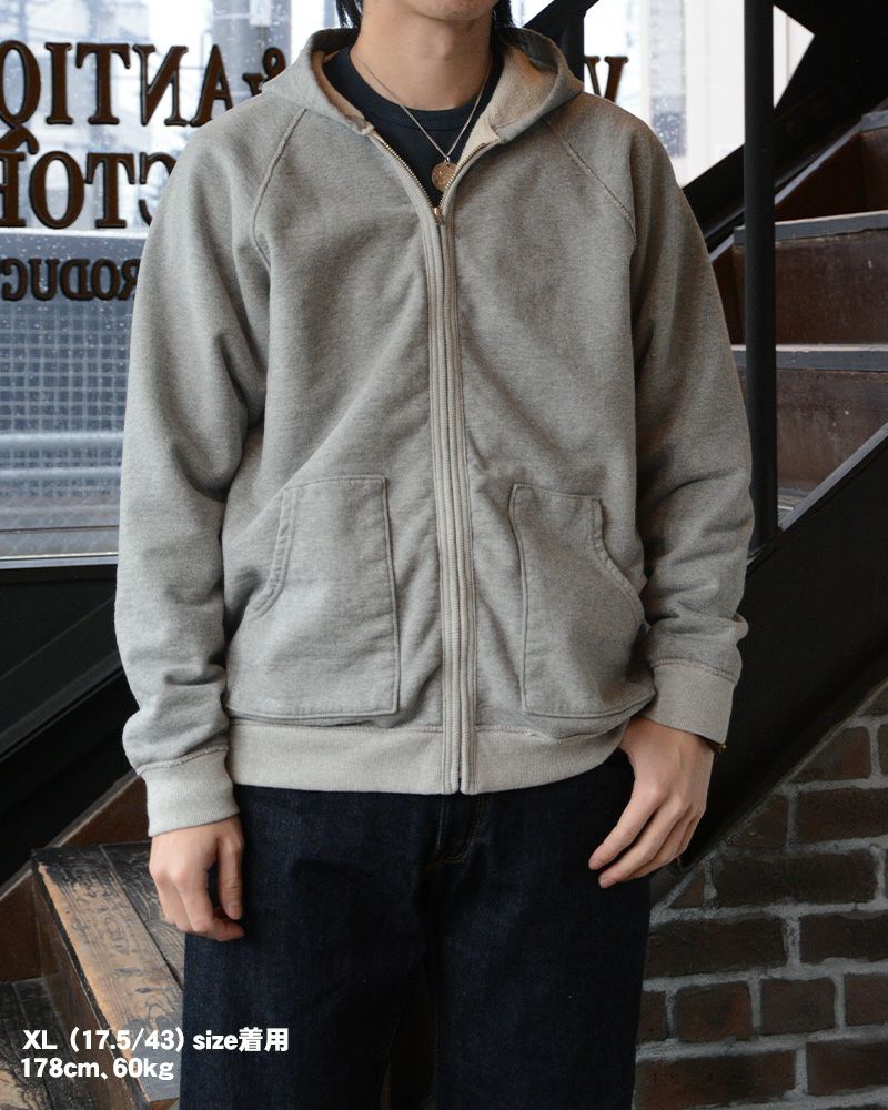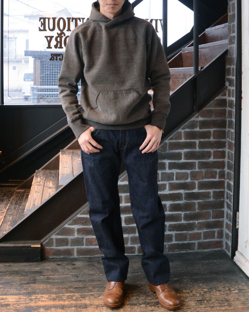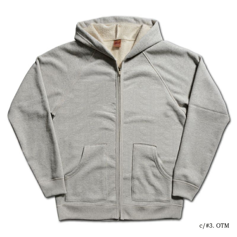 旧式吊編機の風合いを生かした14ozミディアムラグランパーカー