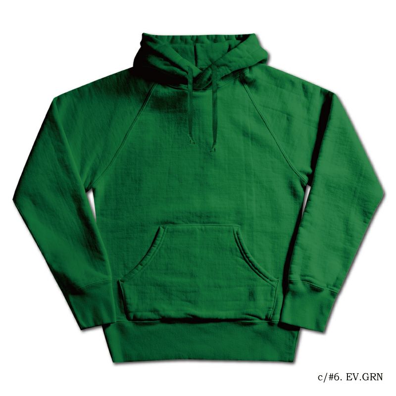 旧式吊編機の風合いを生かした14ozミディアムラグランパーカー