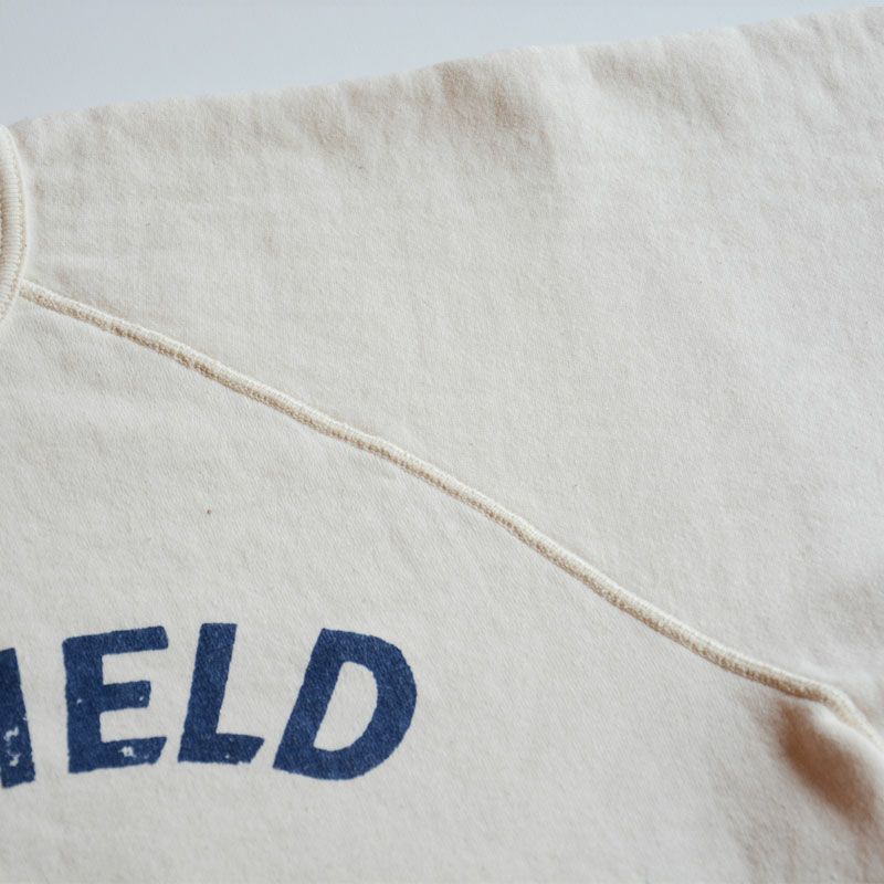 唯一和歌山に存在する旧式吊編機を使用した吊編みらしいミディアムウエイトのスウェット。ゆっくりと編み上げたフワフワの質感と高保温性が魅力の吊編み素材。立体形状と柔らかさ・保温性が魅力。最古ヴィンテージミシン「ユニオンスペシャル フラットシーマ」を使用しながらも高品質を謳う縫製も見所のひとつ。このモデルはアメリカの地名をプリントしたシンプルデザインモデルです。
