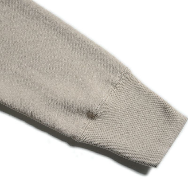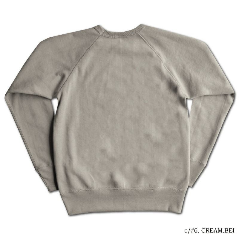 唯一和歌山に存在する旧式吊編機を使用した最高密度スウェット。密度を入れゆっくりと編み上げることでしっかりとした質感と高保温性が特徴です。1960年に華々しく世に登場したラグランスリーブモデルは、肩幅が自由であるため着心地と動き易さに定評がある袖付け方法として有名です。最古ヴィンテージミシン「ユニオンスペシャル フラットシーマ」を使用した高品質を謳う縫製も見所のひとつ。2021年秋冬期中特別カラーで登場!