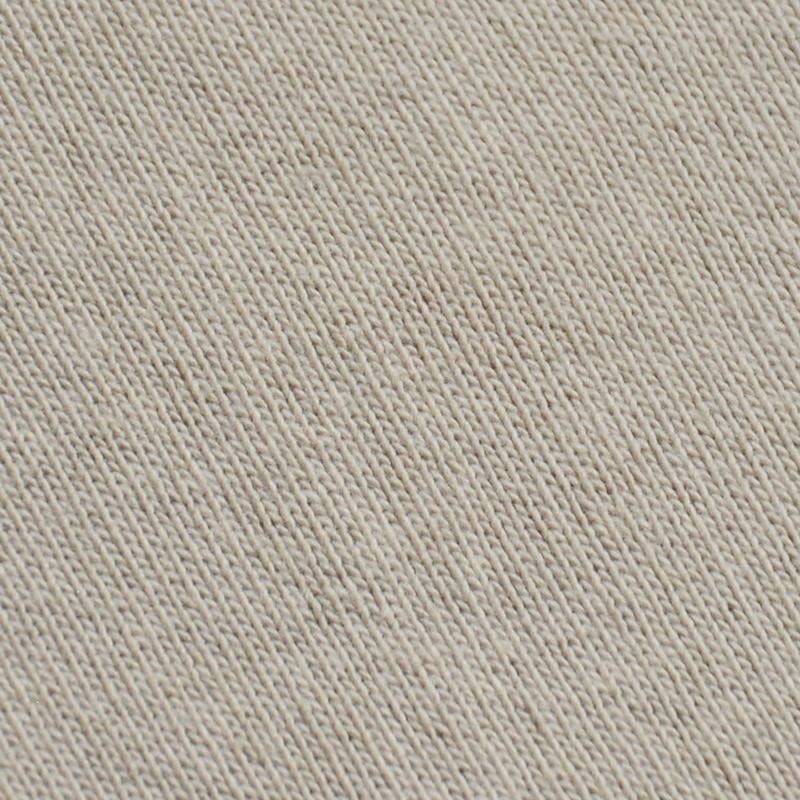 和歌山にて旧式吊編機により製造する吊裏毛素材。本来この旧式編機は「フワフワに柔らかく空気を含むように編み上げる特徴」を持ちますが、デラックスウエア企画では旧式編機に手を加え、最高密度で編み上げることでしっかりとしていながら突出した高保温性を得ています。またドライな手触りと着込む程に体に馴染む質感がデラックスウエアのオリジナル吊裏毛の特徴となります。