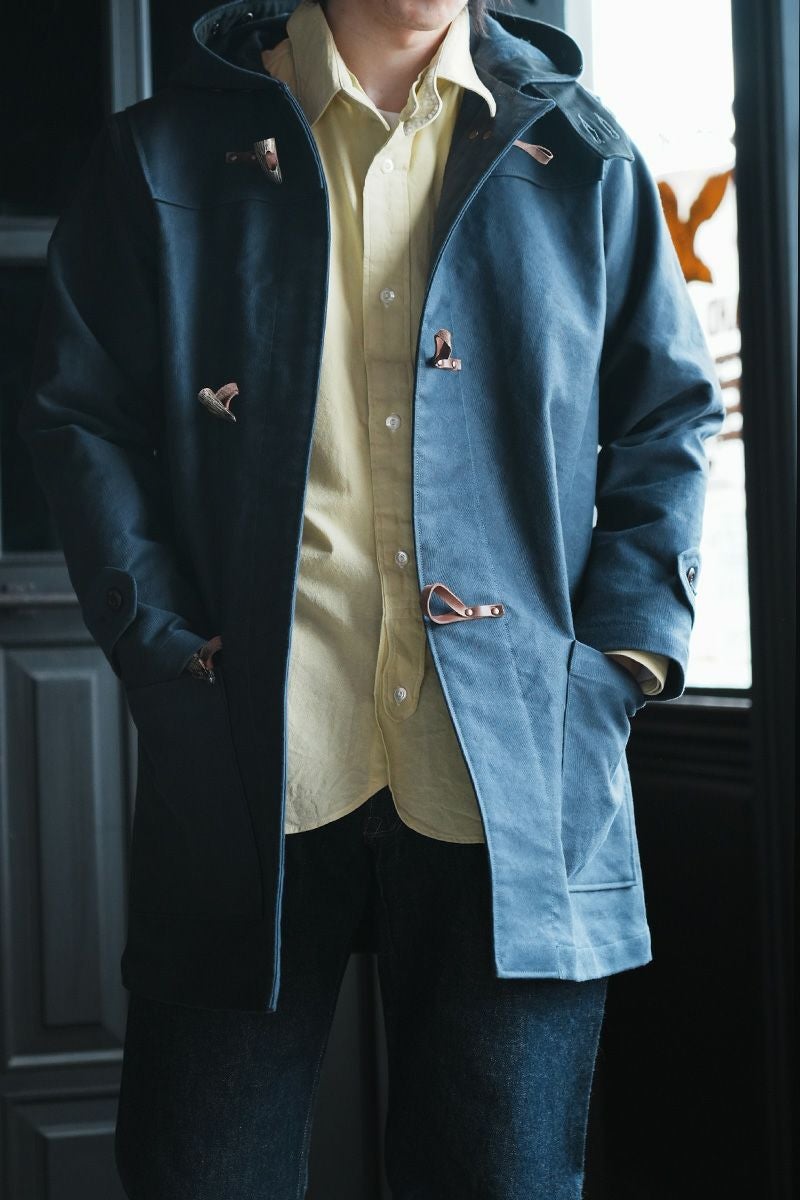 紳士的な雰囲気を帯びるワークウエア、ドレスとワークの融合を語るうえでこのキャラコは外せない商品であるほか、当時のファッションとして「エリを変える」というたしなみを現代に蘇らせました。
