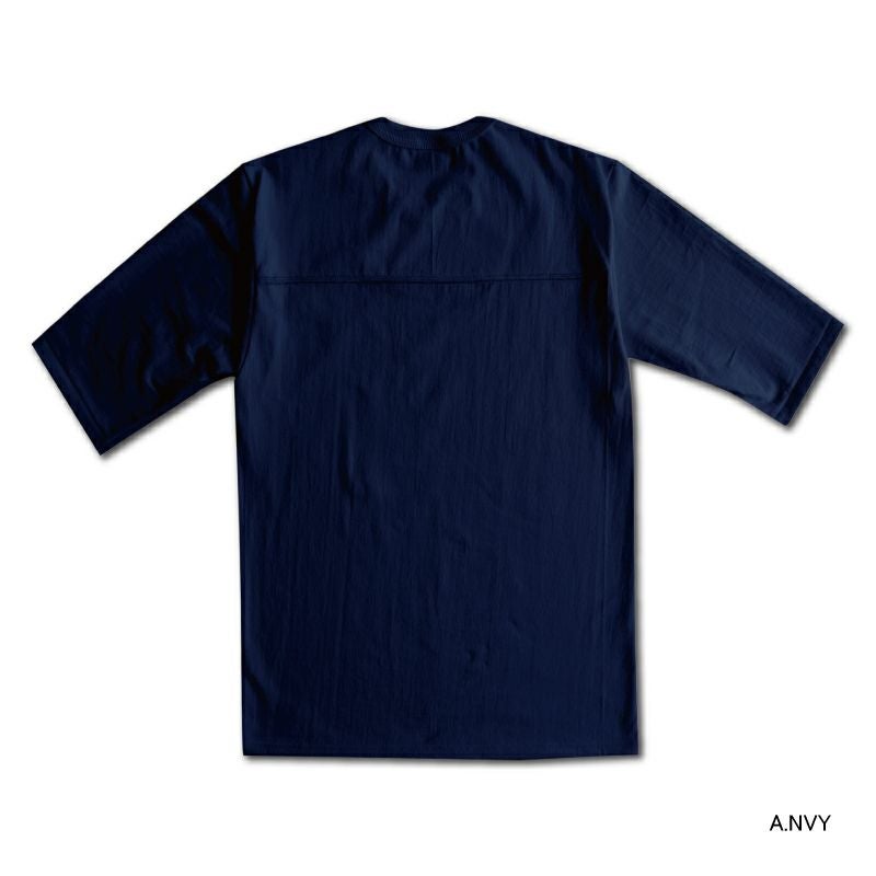 唯一和歌山に存在する旧式吊編機を使用した乾いた質感を特徴とする天竺生地素材を使用。1960年代に存在したフットボールTシャツをリプロダクトしたバランスの取れたカタチが魅力です。2020年春夏新色はジーンズとの相性◎。