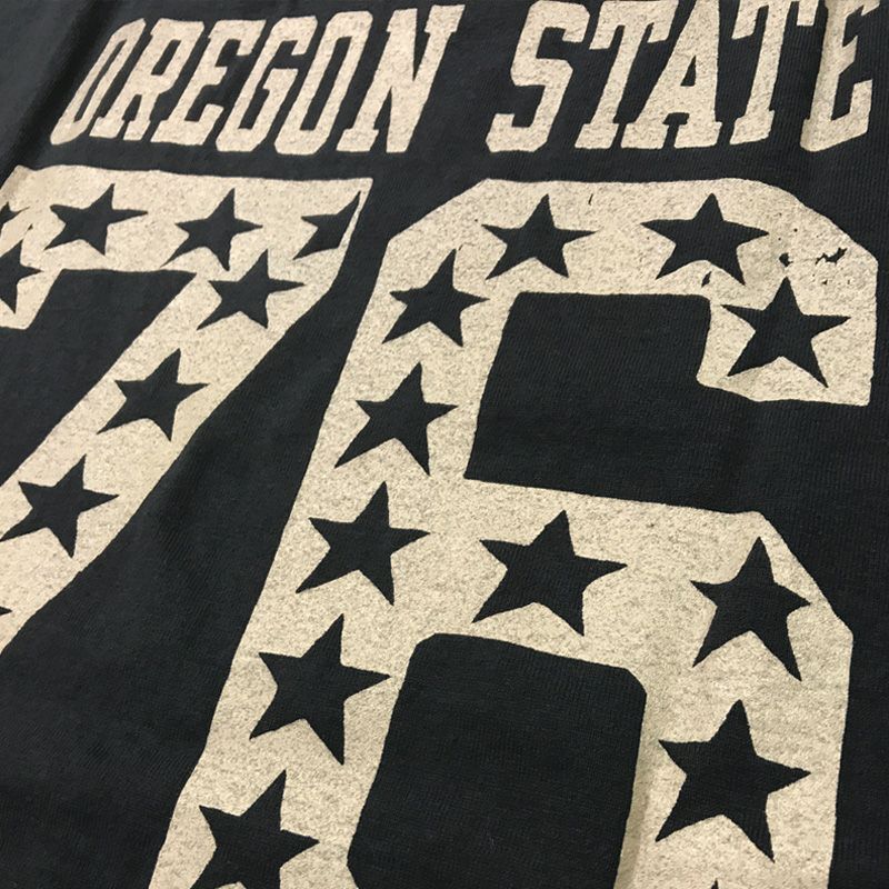 旧式吊編機による柔軟性と伸縮性に富んだオリジナル素材Tシャツのプリントモデル。