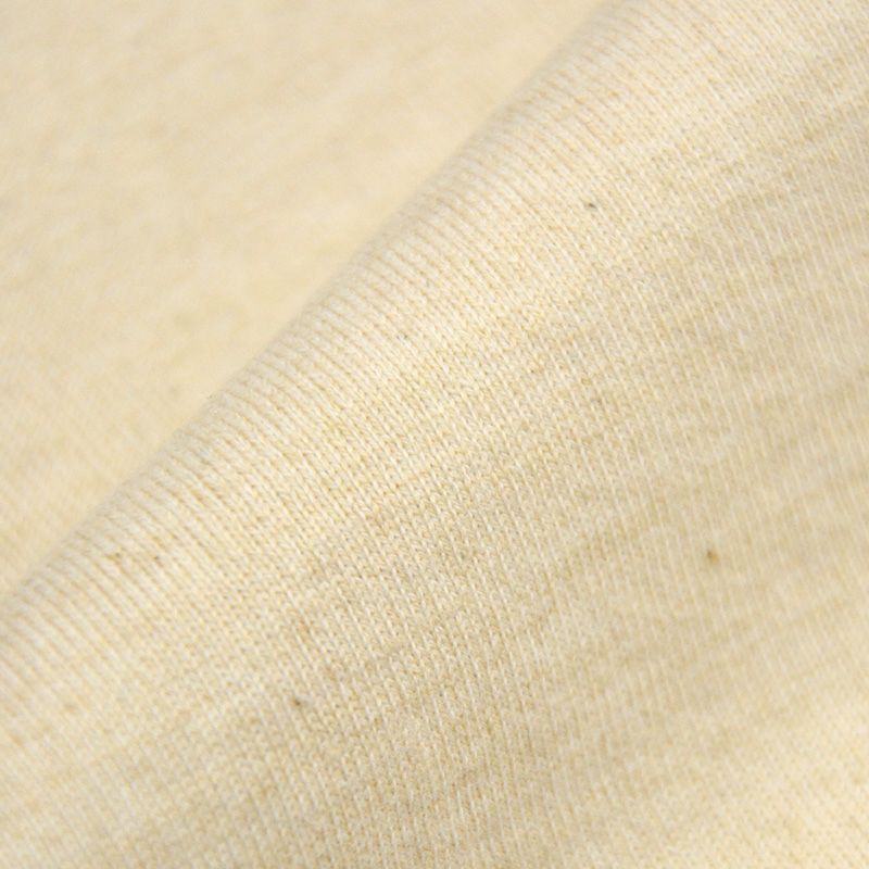 素材にはアメリカ産高級長繊維スーピマコットン端番手と短繊維混カードコットン常番手を引き揃えにて旧式吊編機により製造。レギュラーゲージにてゆっくり時間を掛けて編み上げることでオールドニット特有の柔軟性と伸縮性を創出し、突出した肌触りはDLTシリーズとはまた違った魅力で人気の高いシリーズ。