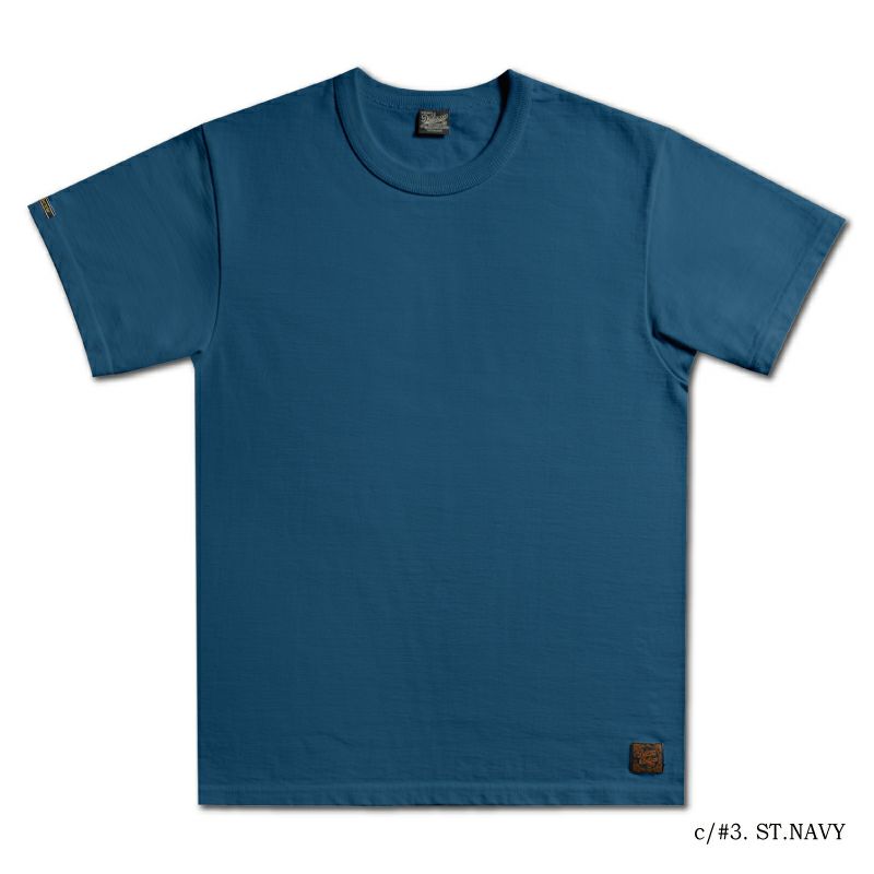 デラックスウエアTシャツの次の顔ともいえる吊天竺。元々はフワフワに編立てる和歌山の旧式吊編機を使用し、限界まで密度を詰めたこれ以上無い特殊素材です。編糸にアメリカコットン20番を2本撚り合わせ、更にその撚り合わせた編み糸を2本引き揃え高密度に編み立てることで得られた品質です。1日におよそ10m程の生産量(Tシャツにして9着分)の大変非効率な希少素材でもあります。