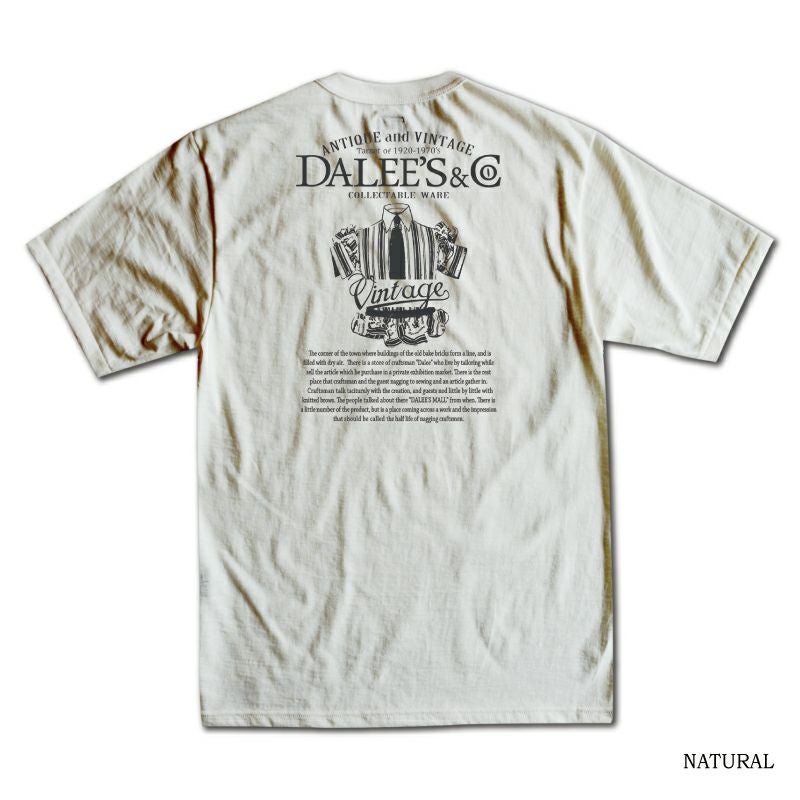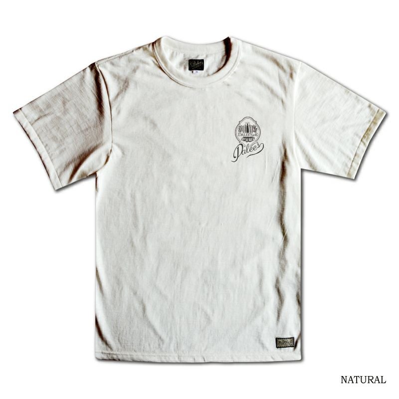 品番、サイズ感を同等にしながら素材やデザインが変更されて毎期発売されているダリーズのメインTシャツ。1900年代初頭のイメージを感じさせるデザインソースは、1世紀前のタッチや絵画技法そして書体など、現代では歴史に消えたとされる実在のモノがベースです。この時代にTシャツなど存在していないものの、色合い、デザインで表現するTシャツ=カンバスという思考により企画します。デザイン柄に引き込まれ、其々の個性を発揮し、古い時代のアートカンバス素材としてTシャツ以外の価値をも見出して頂けたなら本望です。プリントデザインはダリーズ&コーのロゴデザイン。