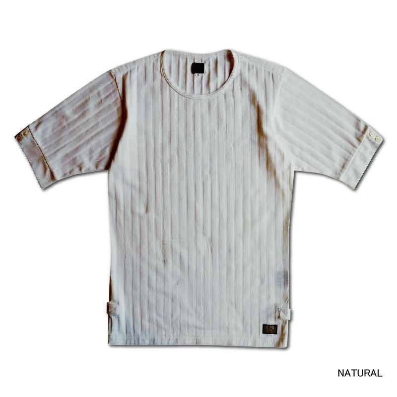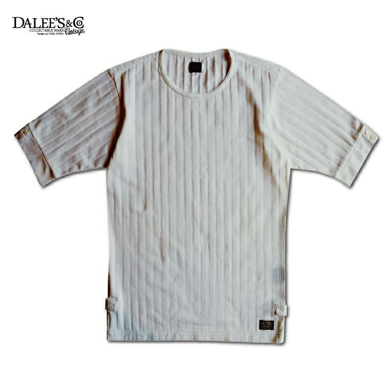 唯一の変形ピケ編みというデザイン性あるニット素材。首元が広いワイドネック形状と肘までの袖丈「エルボースリーブ」により一種独特の形状を創り上げています。一枚着でも重ね着でも使い勝手が良いことからダリーズTシャツシリーズ中で最もリピート率が高い商品です。