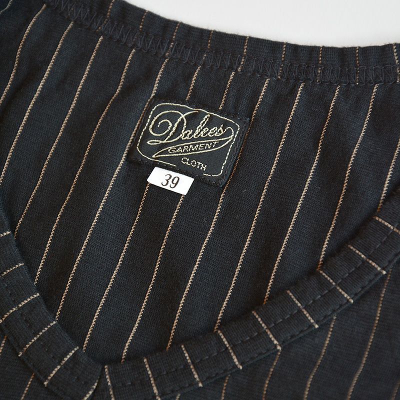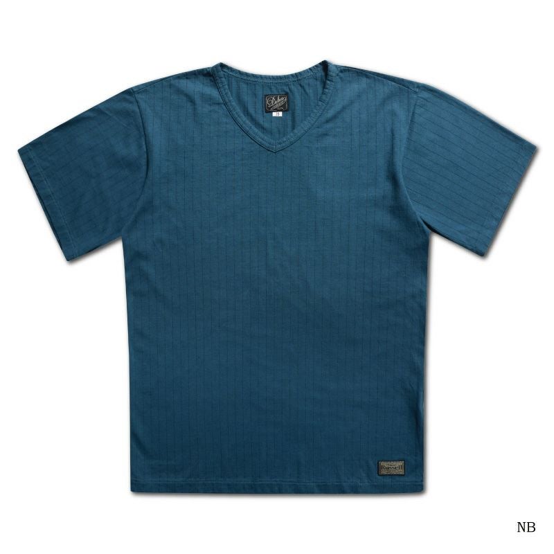 浅いVネックが特徴のストライプTシャツ。
