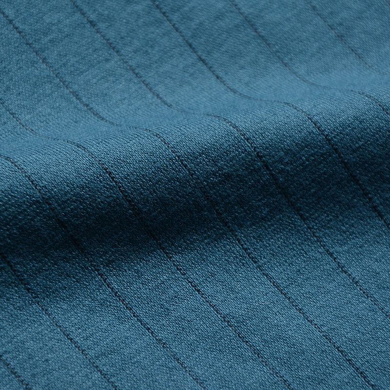 旧式吊編機にて仕上げたコットン90%ポリエステル10%のオリジナル素材。通常ニット素材は斜行という変化が起こり得るが、その斜行を強制的に抑え込んだオリジナルニット素材。