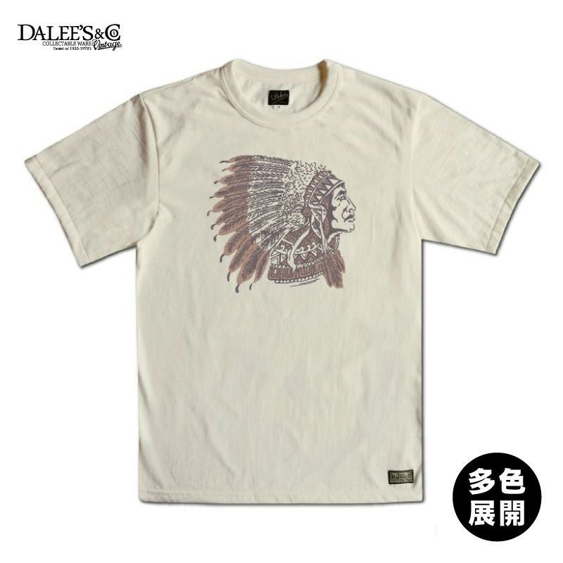 和歌山の旧式吊編機により、ゆっくり空気を含みながら編み上げたオリジナルの丸胴生地。凸凹のムラ糸表面をガスバーナーで焼き、毛羽を焼却したガス焼きスラブ糸から編み上げた天竺素材は、至高の着心地とサラリとした手触りそして横に走る凹凸感が雰囲気抜群のTシャツです。デザインは、狂騒の1920年代のINDIAN柄。