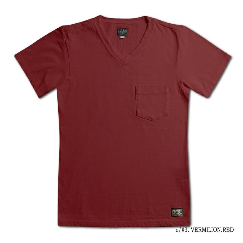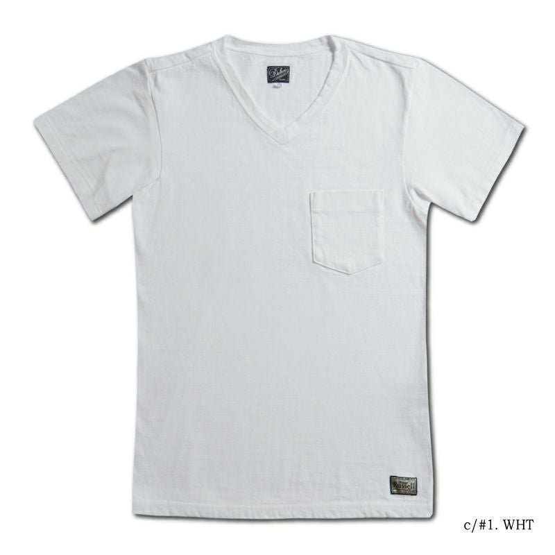 和歌山の旧式吊編機により、ゆっくり空気を含みながら編み上げたオリジナルの丸胴生地。強いムラのラフィ―コットンにより創り上げた極厚天竺素材です。荒く厚くそしてしなやかな着心地とバランスの取れたVネック、左胸にポケットを備えた男らしいTシャツ。