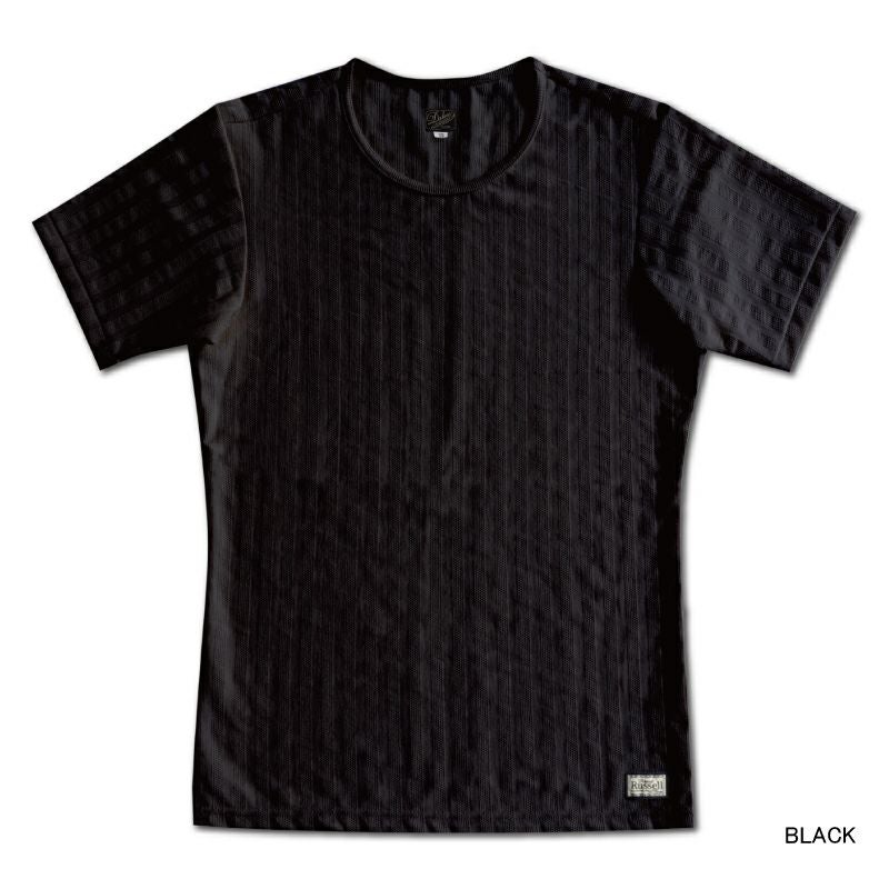 様々な形状を生み出すハニカム編機を駆使して製造した「特殊ピケニット」。コットン100%のしっかりした着心地と、生地表面に見える凹凸のストライプが一種独特の表情を創ります。また、天幅が広いワイドネックより一枚着や重ね着などファッション幅を広げるアイテムとしてもおすすめです。