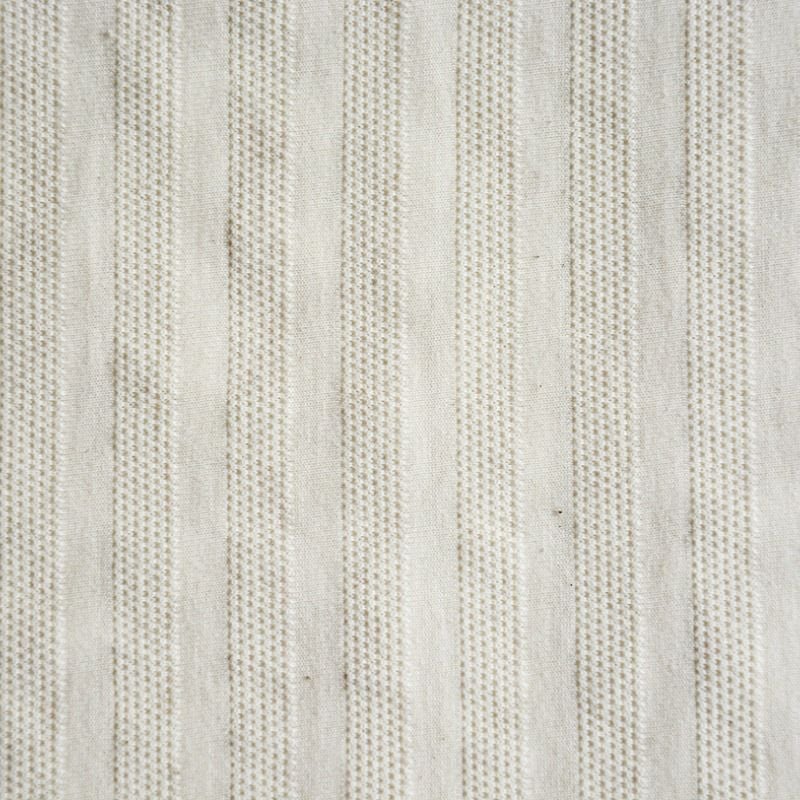 和歌山県和歌山で製造したコットン100%の変わり編みニット。ピケ( 鹿の子編み) を意図的に変形させると、多種多様な形を表現出来ることからオリジナルで企画製造した変形ピケニット。鬼カノコと呼ぶ特殊形状は生地表のストライプ状の凹凸が特徴かつ形状そのものがデザイン性を帯びています。適度な伸縮と、吸汗しながらも肌に張り付きにくいニット素材です。
