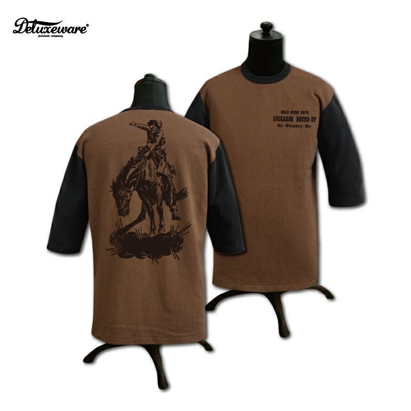 旧式吊編機による抜群の肌触り6分袖フットボールTシャツ。