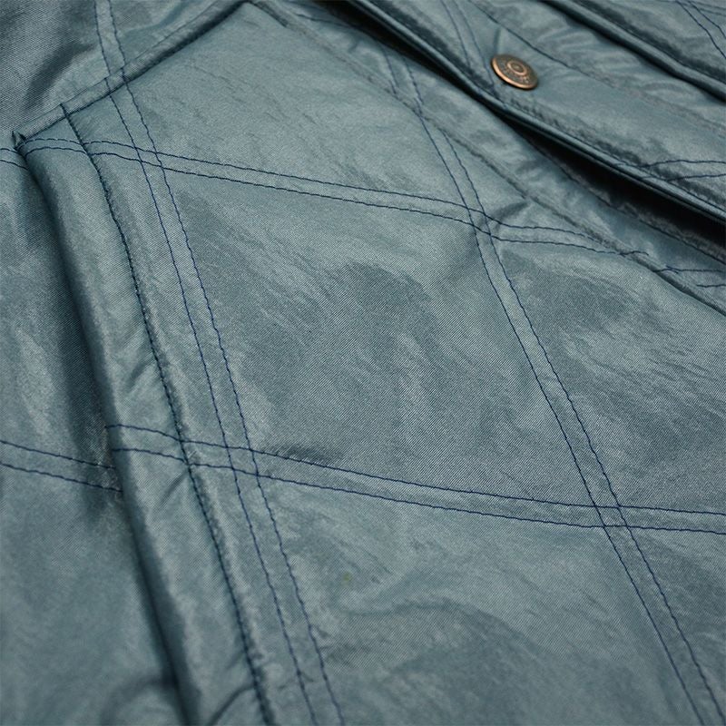 素材にデラックスウエア初となるナイロンプロダクツと銘打って制作されたオリジナルナイロン素材。紡績(素材を糸に成型する工程)にて、蒸気で蒸しながら糸にすることでコットンに近い毛羽感を生み出し、産地福井にて織り上げた一種独特の極厚ナイロンファブリックに更に生地表面を磨き上げることで艶を与え、撥水処理まで施した至高の国産ナイロンファブリックであり名を「タスランナイロン」と呼びます。また、内包した綿素材に6mm厚のコットン綿を使用し、高い保温性をも兼ね備えており実用的な防寒着としての機能性も十分すぎる程に果たします。他では製造困難と思われる製造方式・素材にてカタチにした逸品として提案いたします。