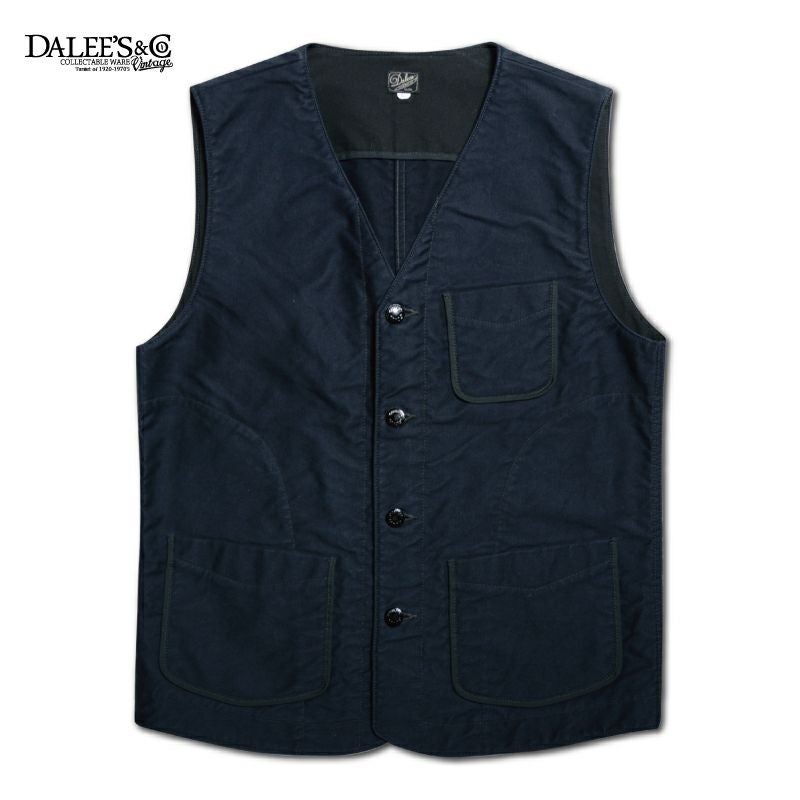 発売以来、名称変更・マイナーチェンジを繰り返しながらも愛され続けているダリーズのベスト。ワークベストという創り込みと内容でありながら、形状とデザインで色気を出した「ドレス&ワークスタイル」を謳う製品です。実在は無く、全て白紙から創造した商品だけに「創りと使い勝手、合わせ方」が魅力ではないでしょうか。実際のところ「特殊オリジナル素材」を取り切りで製造するため数量限定になる事が多いのですが、高価な原価率であり、コストパフォーマンスに優れているという利点があります。「良いモノをサービス価格」で御提供するという意思を持つ数少ない商品でもあります。
