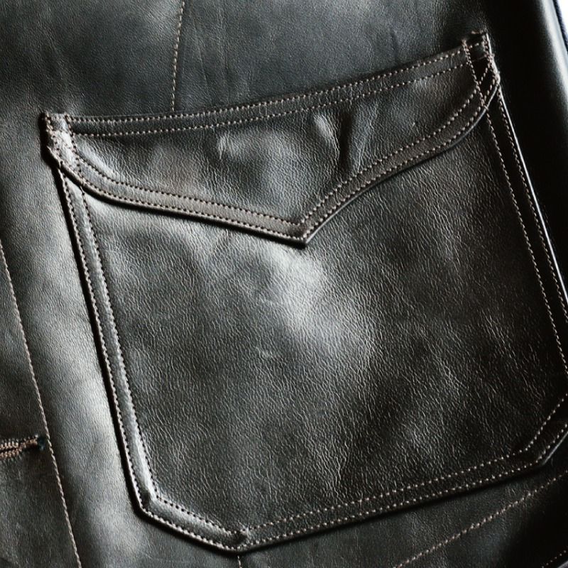 ダリーズの人気商品の一つベストスタイル。本来は紳士なフォーマルスタイルですが、雰囲気と創り込みをワークスタイルに寄せることで着こなし幅が広がったのではないでしょうか。今回はホースハイド製造量の関係上、2020 年春夏限定品となりました。柔らかさとハリ・コシが共存するコンビ鞣しにてこの馬革を仕上げていますが、言い換えれば扱い易く着易いレザーでもあります。何よりもこのブラックホースハイドレザーでのベストを待っていた方も多いのではないでしょうか。